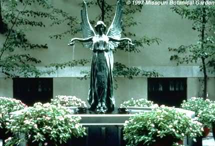 On the fountain, there stands an angel with 2 open hands. Darpick never specified which
